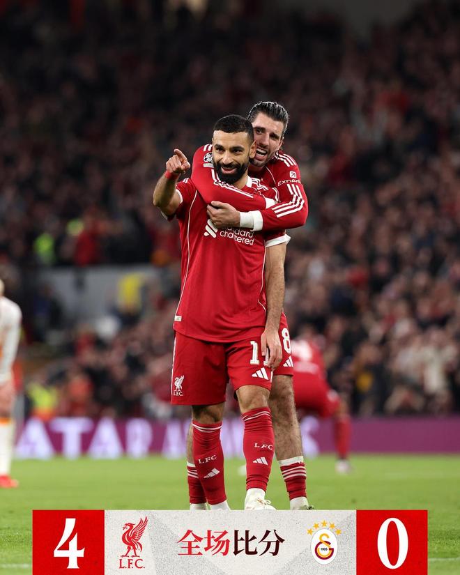 最终,利物浦4-0横扫加拉塔萨雷。利物浦两回合总比分4-1淘汰加拉塔萨雷。